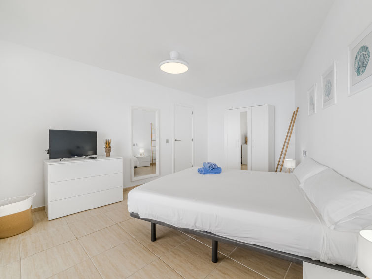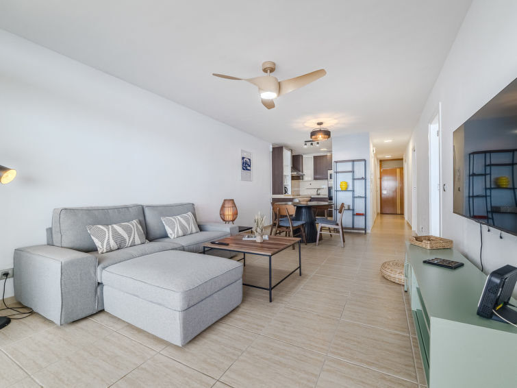 "Punta del Sol", apt 3 pièces 110 m2 au 1er étage. Logement idéal pour 4 adultes. Spacieux et clair, aménagement fonctionnel et confortable: séjour/salle à manger avec Télévision numérique et ventilateur. Sortie sur le balcon. 1 chambre avec 1 grand-lit (1 x 150 cm, longueur 190 cm), Télévision numérique et ventilateur. 1 chambre avec 1 lit double (1 x 150 cm, longueur 190 cm), ventilateur. Cuisine (four, 4 plaques vitrocéramiques, grille-pain, bouilloire électrique, micro-ondes, cafetière électrique). 2 douches/WC. Pas de chauffage. Grand balcon. Meubles de terrasse. Très belle vue sur la mer. A disposition: lave-linge, fer à repasser, sèche-cheveux. Internet (Connexion WIFI, gratuit). Place de parking No 13 (couvert). Veuillez noter: adapté(e) aux familles. Logement non-fumeur. Extincteur. VV-38-4-0113161