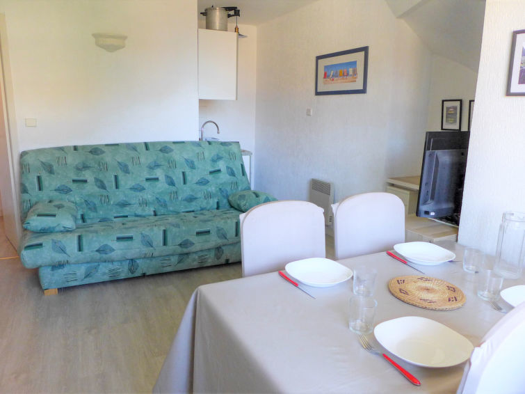 Résidence "La Pergola", de 2 étages. Dans la localité, à 150 m de la mer, à 150 m de la plage. En commun: pergola (20 m2), meubles de jardin, place de parking No 8. Magasins 350 m, supermarché 1.7 km, restaurant 350 m, arrêt de bus "Plage" 700 m, plage de sable 150 m, centre thermal "Thalazur" 1.5 km. Terrain de golf (9 trous) 1.8 km. Veuillez noter: sans ascenseur.