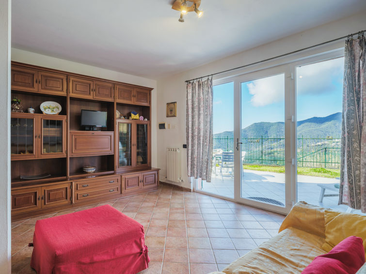 "Casa di Moneglia", appartement 2-kamers 60 m2, op de begane grond. Doelmatig ingericht: woon-/eetkamer met 1 2-pers divanbed en TV. Uitgang naar de zitplaats in de tuin. 1 2-pers. kamer. Uitgang naar de tuin. Kookhoek (4-pits kookplaat, oven, afwasmachine, magnetron). Douche/bidet/WC. Geen verwarmingsmogelijkheid. Zithoek in de tuin 20 m2, tuin 50 m2. Terrasmeubelen. Uitzicht in de verte op zee en het dal. Ter beschikking: wasmachine, kinderbed tot 2 jaar, haardroger. Internet (WiFi, gratis). Parkeerplaats (1 Auto). Maximaal 1 huisdier/hond toegestaan. IT010037C2JCI34QJO