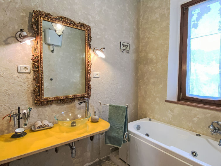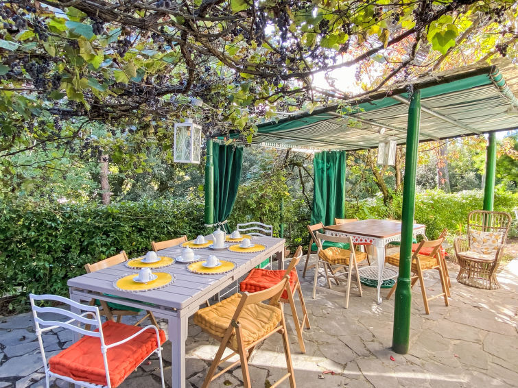 Huis 6-kamers 200 m2 op 2 verdiepingen. Ruim, gedeeltelijk gerenoveerd in 2025: woon-/eetkamer met open haard (alleen decoratie), bibliotheek en TV. Uitgang naar de tuin. Studio met 1 2-pers divanbed. Woonkeuken (oven, afwasmachine, Gasfornuis, 5 kookpitten (vlammen), broodrooster, waterkoker, magnetron). Uitgang naar de loggia. Douche/bidet/WC. Geen verwarmingsmogelijkheid. Bovenverdieping: 3 2-pers. kamers. 1 kamer met 1 bed en 2 slaapplaatsen. Bad/WC, hydro massage bad. Geen verwarmingsmogelijkheid. Zithoek in de tuin. Terrasmeubelen, barbecue, ligstoelen. Ter beschikking: wasmachine, droger, strijkijzer, kinderstoel, kinderbed tot 2 jaar, haardroger. Internet (WiFi, gratis). 2 huisdieren/honden toegestaan. Privé ingang, rookmelders, brandblusser. IT049012B4HBJVD8Q8