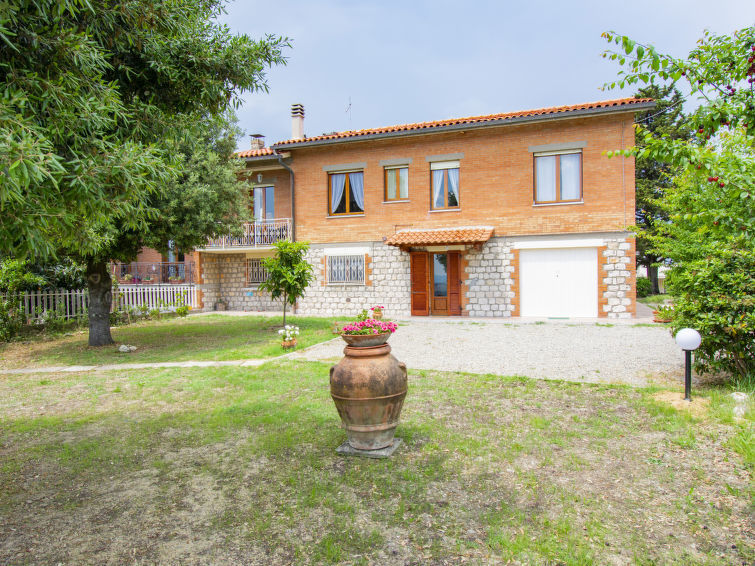 Groot, comfortabel huis "Miranda", van 2 verdiepingen, eenzijdig aangebouwd, omgeven door bomen en velden. Aan de rand van de plaats, 150 m van het centrum van Villamagna, rustige, zonnige ligging, 45 km van zee. Voor alleengebruik: wilde tuin, openluchtzwembad (verhoogd) (7 x 4 m, seizoensgebonden beschikbaarheid: 01.Mei. - 15.Okt.). Buitendouche, prieel, onderhoud zwembad door de eigenaar/tuinman. Parkeerplaats (voor 2 auto's) op het terrein. Winkel 150 m, supermarkt 12 km, restaurant 4 km, bar 250 m, bushalte 200 m, zandstrand "Marina di Cecina" 45 km, thermaalbad "Casciana Terme" 27 km. Manege 2 km. Attracties in de buurt: Volterra 14 km, San Gimignano 25 km, Pisa 60 km. Groepen jongeren uitsluitend op aanvraag. Eigenaar woont in apart huisgedeelte. De eigenaar heeft een hond.