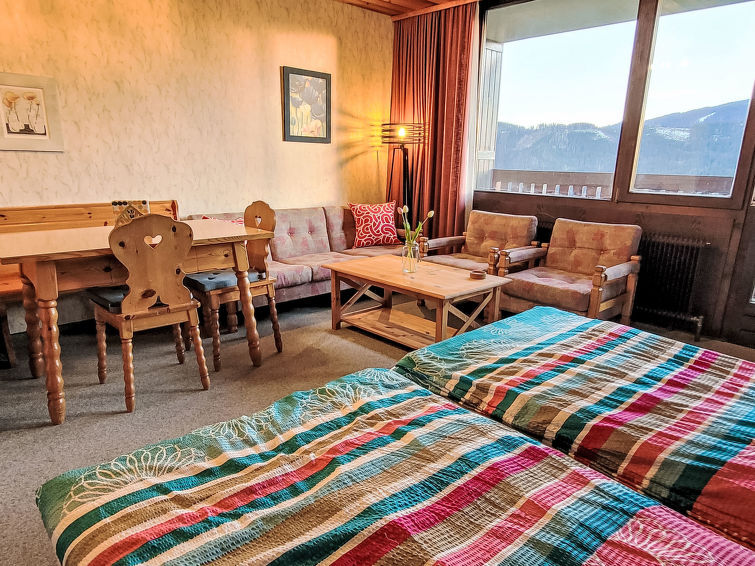 "Top A45", appartement 1-kamer 39 m2, op de begane grond. Licht, gedeeltelijk gerenoveerd in 2024, gezellig ingericht: hal. Woonkamer met 2 kastbedden, eettafel en Kabel-TV (Flatscreen TV). Uitgang naar het balkon. 1 kamer met 2 bedden. Kleine keuken (3-pits kookplaat, broodrooster, diepvriezer, elektrische koffiemachine). Douche/WC. Verwarming. Balkon 10 m2. Balkonmeubilair. Zeer mooi panoramazicht op de bergen en het landschap. Ter beschikking: haardroger. Parkeerplaats. Niet rokers woning, rookvrij huis. Mooie ligging, ideaal startpunt om de wereld van Ski Amadé te verkennen. 50415-006730-2020