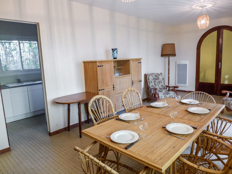Eengezinswoning "Dominique". 900 m van het centrum, 500 m van zee, 500 m van het strand. Voor alleengebruik: terrein 750 m2 (omheind), parkeerplaats. Winkel 800 m, levensmiddelenwinkel 700 m, supermarkt 1.5 km, restaurant 700 m, zandstrand 500 m. Golfterrein 4 km, tennis 3 km, manege 15 km.
