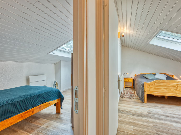 Halfvrijstaand huis 4-kamers 65 m2 op 2 verdiepingen. Comfortabel ingericht: woon-/eetkamer met TV (Flatscreen TV). Uitgang naar het terras. 1 kamer met 1 2-pers bed (140 cm, lengte 190 cm). Keuken (afwasmachine, 3 keramische glas kookplaten, broodrooster, waterkoker, magnetron, elektrische koffiemachine, pads voor de koffiemachine (Dolce gusto) extra). Douche, aparte WC. Elektrische verwarming. Bovenverdieping: 1 kamer met 2 bedden (90 cm, lengte 190 cm). 1 kamer met 1 2-pers bed (140 cm, lengte 190 cm). Terras 25 m2, op het zuiden gelegen, zithoek in de tuin 250 m2. Terrasmeubelen, barbecue, ligstoelen. Ter beschikking: wasmachine. Internet (WiFi, gratis). Parkeerplaats. Niet rokers woning. Maximaal 1 huisdier/hond toegestaan. Rookmelders.