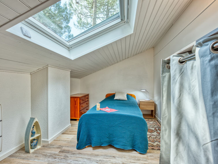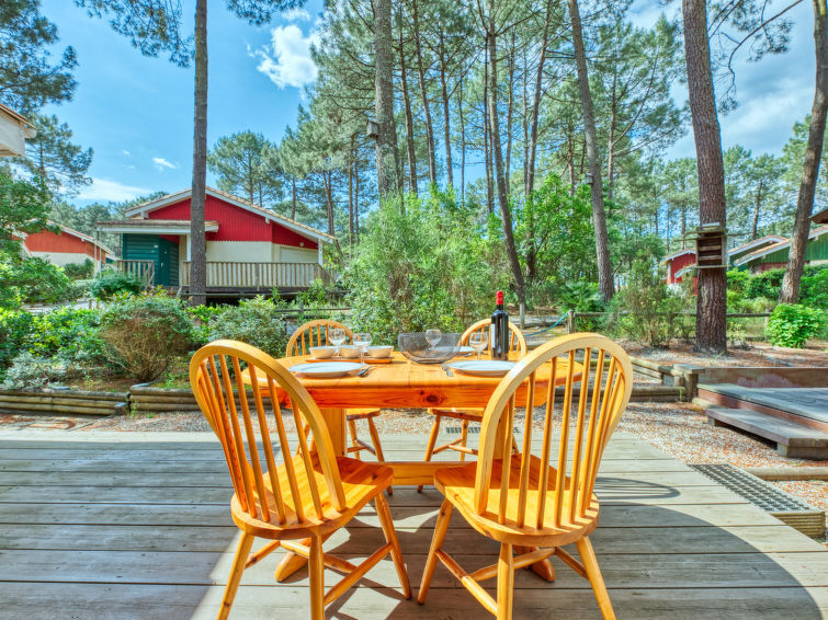 Residentie "Golf Loisirs". Aan de rand van de plaats, 2 km van het centrum, 2 km van zee, 5 km van het meer, 2 km van het strand. Voor medegebruik: openluchtzwembad (13 x 17 m, 180 cm diepte, seizoensgebonden beschikbaarheid: 18.Jun. - 18.Sep.). Parkeerplaats op het terrein. Winkel 2 km, supermarkt 2 km, restaurant 700 m, fietsverhuur 300 m, bushalte "Marie Curie" 1.7 km, zandstrand "Plage Sud" 2 km. Golfterrein (18 holes) 500 m, surfschool 3 km, zeilschool 6 km, tennis 300 m, manege 1.5 km, fietspad 200 m. Attracties in de buurt: Bordeaux 60 km, Dune du Pyla 70 km, saint Emilion 60 km, Cap Ferret 70 km. De eigenaar accepteert geen jeugdgroepen.
