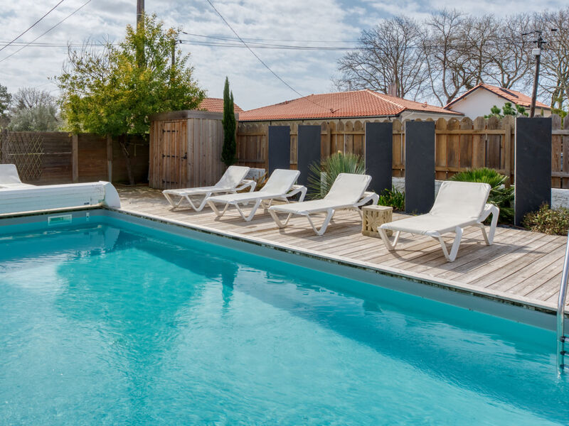 Mooi villa "Andernos Bassin". 2.2 km van het centrum van Andernos-les-Bains, 40 km van het centrum van Arcachon, 45 km van het centrum van Bordeaux, in een woonwijk, 2.2 km van zee, 2.2 km van het strand. Voor alleengebruik: terrein 800 m2 met wilde tuin, openluchtzwembad verwarmd (8 x 4 m, 150 cm diepte, seizoensgebonden beschikbaarheid: 01.Mei. - 30.Sep.) met oprolbaar afdekscherm. Terras, onderhoud zwembad door de eigenaar/tuinman. In het huis: tafeltennis. Parkeerplaats (voor 3 auto's) bij het huis op het terrein. Winkel 1.5 km, supermarkt 1.5 km, restaurant 2 km, voetgangersgebied 2 km, bushalte "Commandant Tulasne" 200 m, zandstrand "du Bétey / de la Jetée (Bassin)" 2.5 km. Golfterrein (9 holes) 4 km, tennis 2.5 km. Attracties in de buurt: Plage océane Grand Crohot 18 km, Cap Ferret (Pointe/phare) 28 km. De eigenaar woont op hetzelfde terrein. De omgeving is gevoelig voor geluidsoverlast. Gelieve geen lawaai te maken en de rust te bewaren.