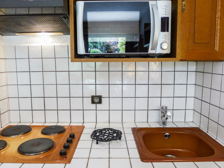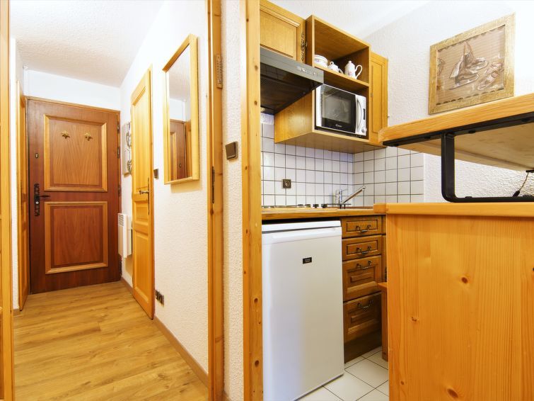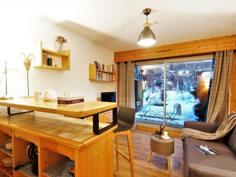 Studio 1-kamer 21 m2, op de begane grond, op het zuiden gelegen. Woon-/eetkamer met 1 2-pers divanbed (160 cm, lengte 190 cm), TV. Uitgang naar het terras, naar de zitplaats in de tuin. Hal met 1 opklapbed (80 cm, lengte 190 cm). Kookhoek (4-pits kookplaat, oven, waterkoker, elektrische koffiemachine). Bad/WC. Elektrische verwarming. Terras, zithoek in de tuin. Terrasmeubelen. Mooi uitzicht op de bergen. Ter beschikking: wasmachine. Internet (Internet (WiFi), extra). Niet rokers woning, geen parkeerplaats. TV alleen FR. Rookmelders. 74056 000385 ZT