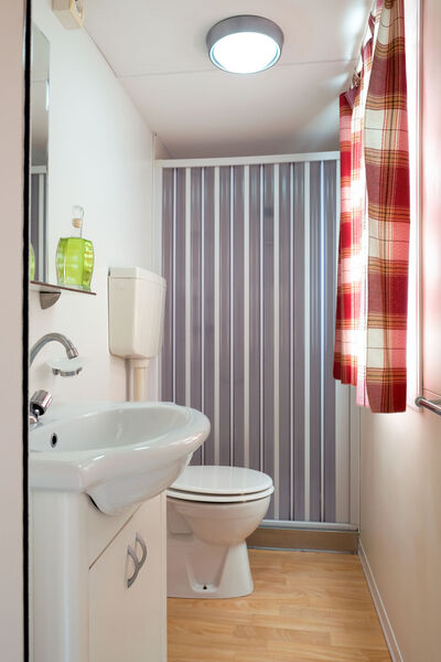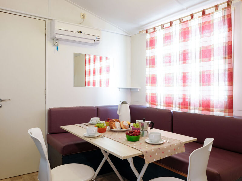 "Happy Easy", 3-kamers mobilhome 25 m2. Het objekt is geschikt voor 4 volwassenen + 1 kinderen. Doelmatig ingericht: woon-/slaapkamer met 1 slaapplaats, eettafel, elektrische verwarming en air-conditioning. 1 kamer met 1 2-pers bed (140 cm, lengte 190 cm). 1 kamer met 2 bedden (70 cm, lengte 190 cm), 1 x 1 stapelbedden (65 cm, lengte 179 cm). Open keuken (4-pits kookplaat). Douche/WC. Air-conditioning (extra). Terras gedeeltelijk overdekt. Terrasmeubelen, elektrische barbecue (verrijdbaar), ligstoelen (2). Ter beschikking: klamboe. Parkeerplaats (1 Auto). Niet rokers woning. Maximaal 1 klein huisdier/hond toegestaan. IT099013B1YCJCMG23