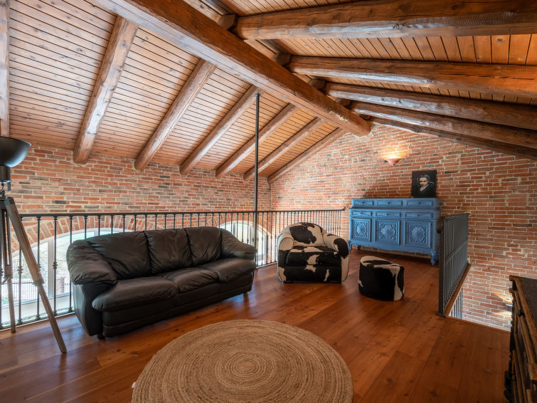 Huis 9-kamers 500 m2 op 3 verdiepingen. Licht, zeer comfortabel en rustiek ingericht: groot, open eetkamer met eettafel. Uitgang naar de tuin. Biljardkamer. Open keuken (oven, afwasmachine, 5 kookpitten (vlammen), broodrooster, waterkoker, diepvriezer, elektrische koffiemachine). Uitgang naar de tuin. Douche/WC, aparte WC. Bovenverdieping: groot, open woonkamer met Sat-TV. 2 kamers, elke kamer heeft 1 2-pers bed (160 cm). 1 kamer met 1 bed en Sat-TV. Kleine woonkamer. Douche/WC, aparte WC. 2e Verdieping: 1 kamer met 1 2-pers bed (160 cm), bad/douche/WC en hot tub. 1 kamer met 2 bedden en douche/WC. Open galerij met afgeschuinde daken. Verwarming. Verwarming alleen beschikbaar van 01.10. tot 30.04. Houten vloeren. 2 balkons, 2 terrassen overdekt. Terrasmeubelen, balkonmeubilair, ligstoelen (6). Panoramazicht op het landschap en Castello di Frinco. Ter beschikking: wasmachine, kinderbed. Internet (WiFi, gratis). Maximaal 2 huisdieren/honden toegestaan. Geen verplichte extra kosten ter plaatse te betalen. Bedlinnen, handdoeken, eindschoonmaak en alle energiekosten zijn inclusief. IT005055C2NNENKQY8