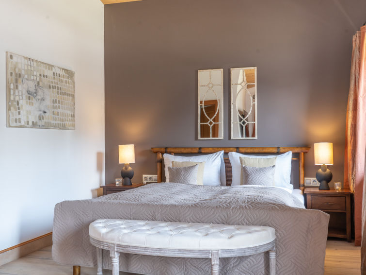 Huis 6-kamers 200 m2 op 2 verdiepingen. Ruim en licht, zeer mooi en smaakvol ingericht: woon-/eetkamer met open haard, eettafel, Digitale TV, internationale TV-zenders en stereo-installatie. Uitgang naar de tuin. 1 2-pers. kamer. 1 2-pers. kamer. Uitgang naar het terras. Open keuken (oven, 4 keramische glas kookplaten, broodrooster, waterkoker, magnetron, diepvriezer, elektrische koffiemachine, pads voor de koffiemachine (Nespresso) extra). Douche/WC. Verwarming. Bovenverdieping: 1 2-pers. kamer met bad/douche/WC. Uitgang naar het balkon. 1 kamer met 2 slaapplaatsen. 1 2-pers. kamer met bad/WC. Uitgang naar het balkon. Parketvloeren. Comfortabele inrichting in landelijke stijl. Ter beschikking: wasmachine, sauna, kinderstoel, kinderbed tot 2 jaar. Internet (Internet (WiFi), gratis). Rookvrij huis. Maximaal 2 huisdieren/honden toegestaan. Rookmelders. Het zwembad genoemd in de beschrijving is voor privé gebruik.